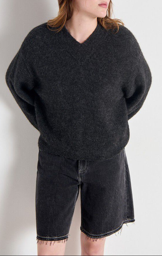 Il maglione East è un pezzo iconico del guardaroba American Vintage, riconoscibile per la sua vestibilità ampia, lo scollo a V e la maglia generosa. Realizzato con un misto di filati italiani, ha una texture pregiata, soffice e calda. La sua maglia spessa e i colori screziati le conferiscono un fascino senza tempo, combinando un comfort accogliente con un look rilassato. Da infilare sopra un abito o una camicia per scoprire il colletto in modo discreto.