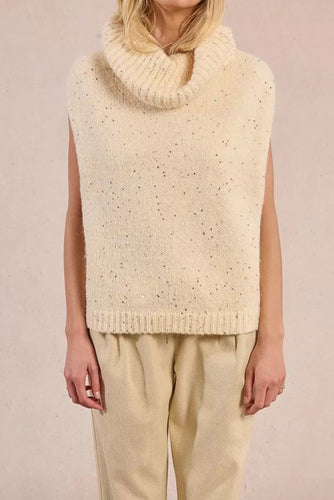 MOLLY BRACKEN Maglia dolcevita smanicata con paillettes donna