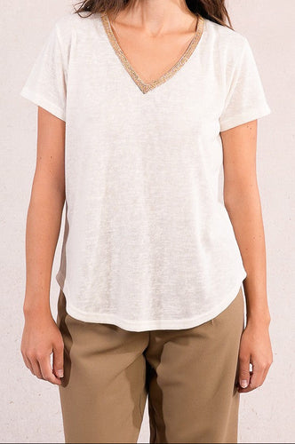 MOLLY BRACKEN T-shirt con paillettes sullo scollo donna