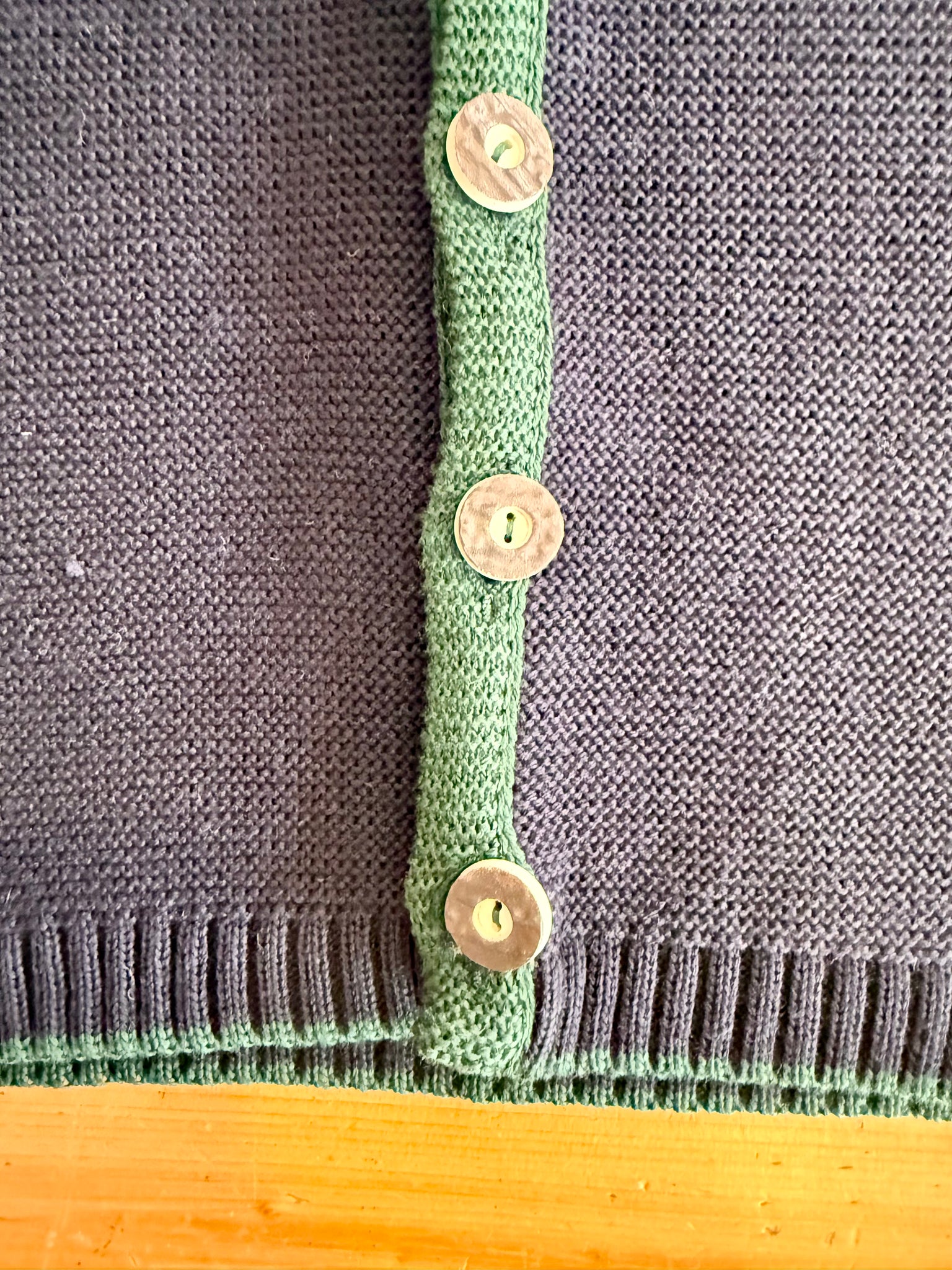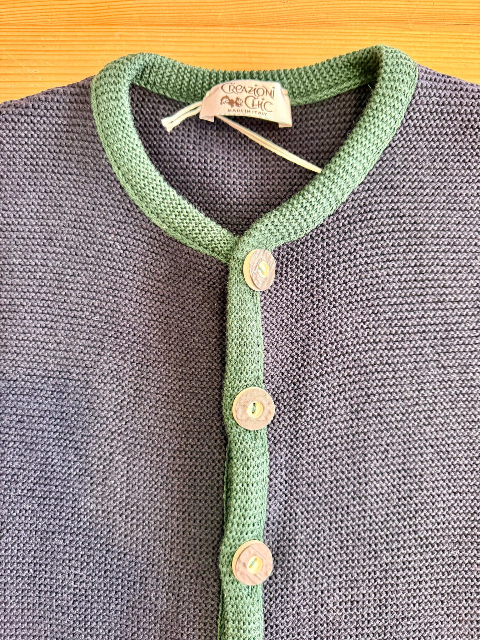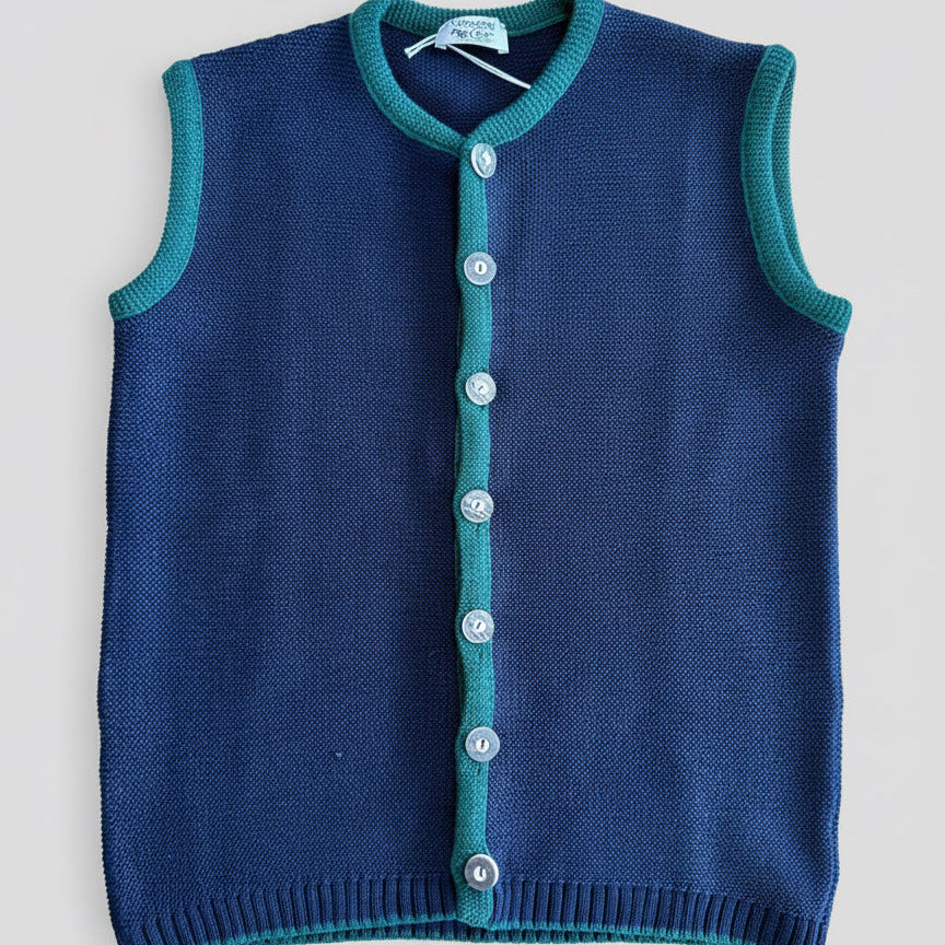 Gilet in maglia, con bottoni in osso e bordi in contrasto.
