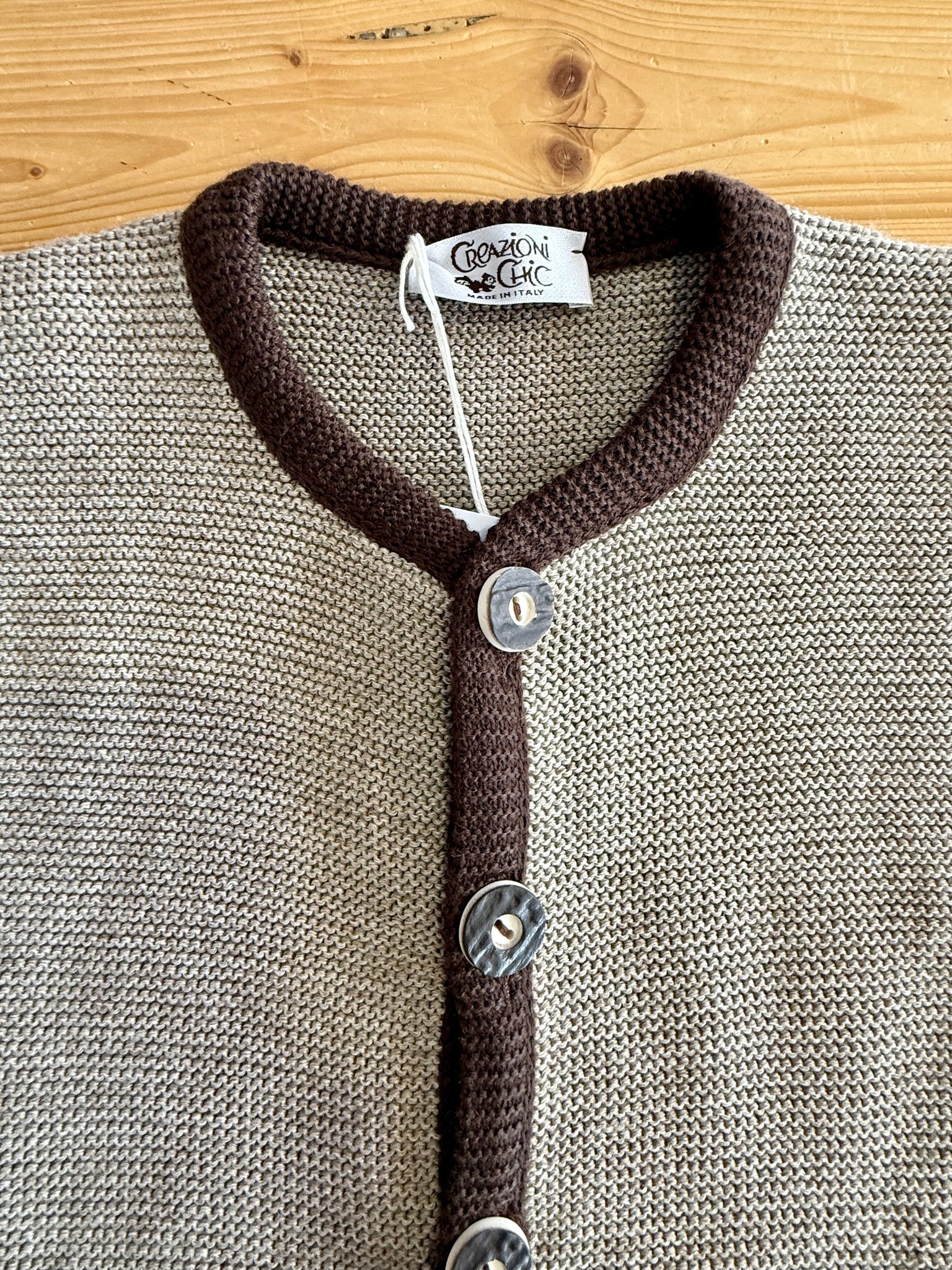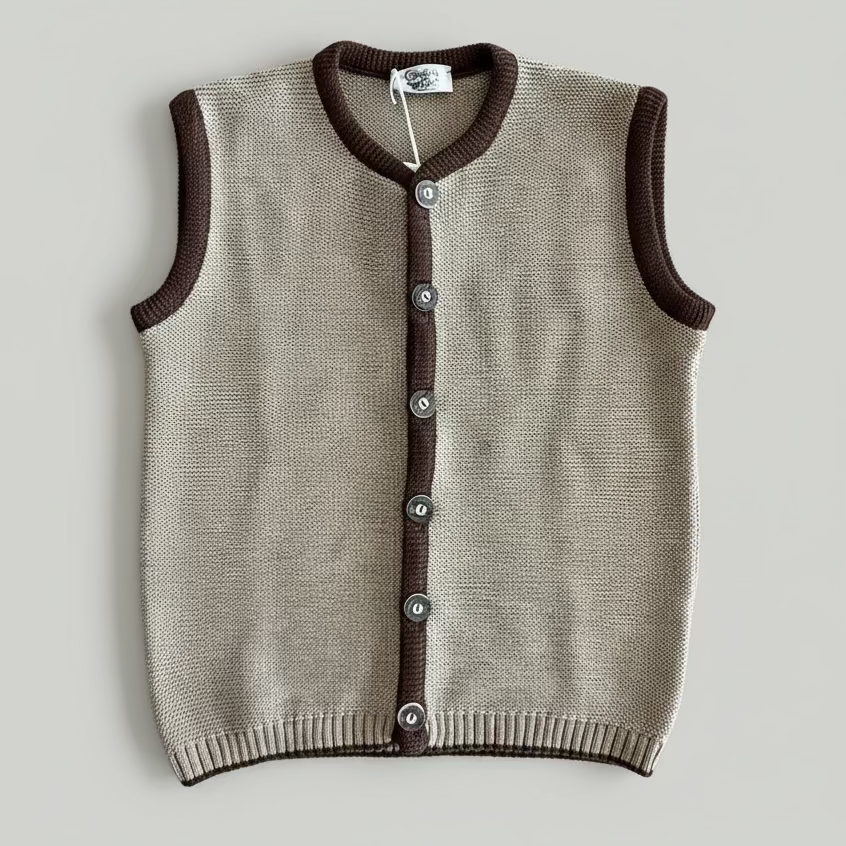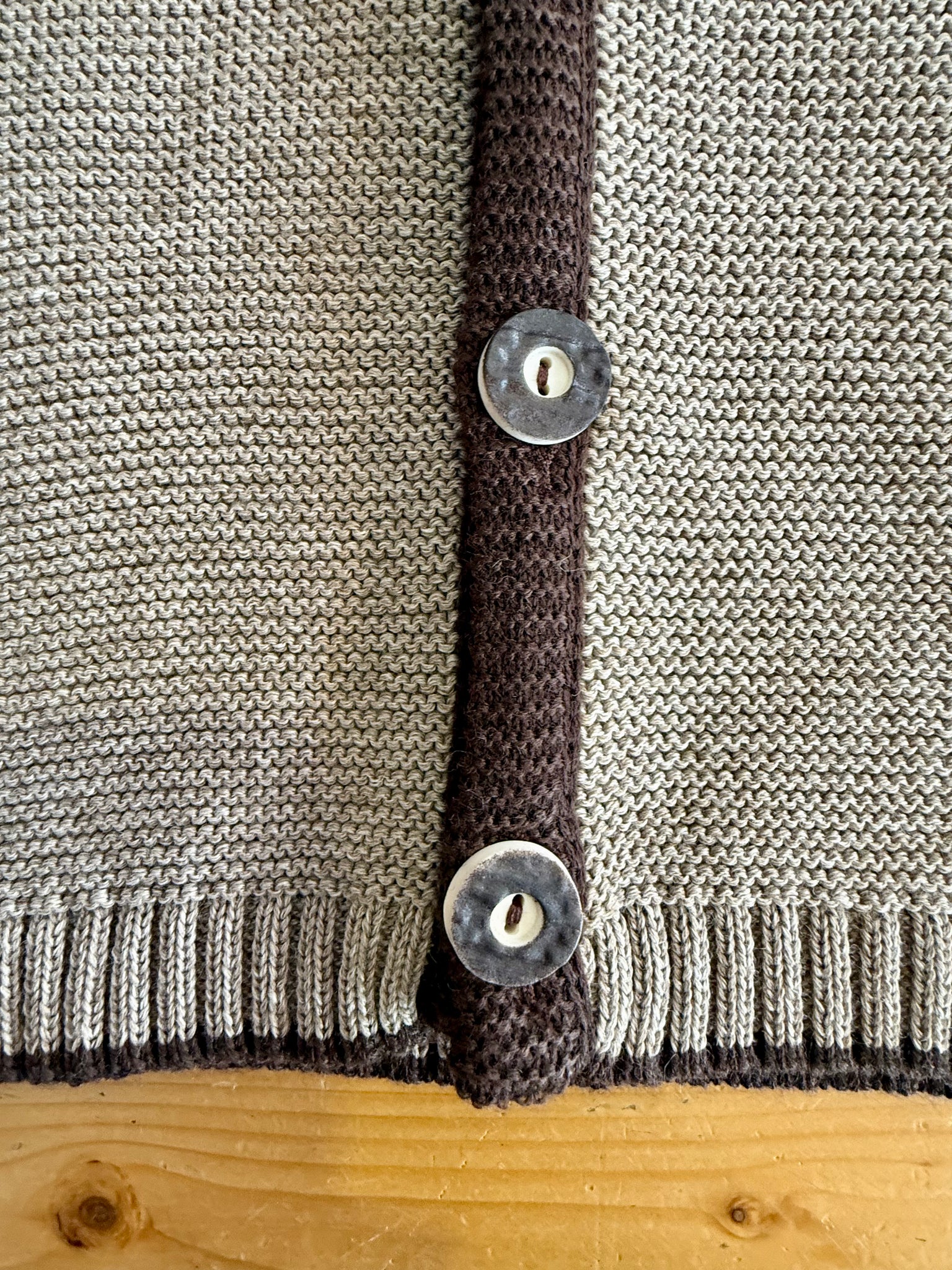 Gilet in maglia, con bottoni in osso e bordi in contrasto.